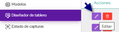 Para la eliminación de grupos, acceder al menú Diseñador de Tablero, localizar el grupo a eliminar y presionar el botón Eliminar