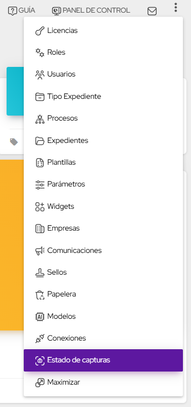 A continuación puede visualizar una imagen del menú estado de capturas: