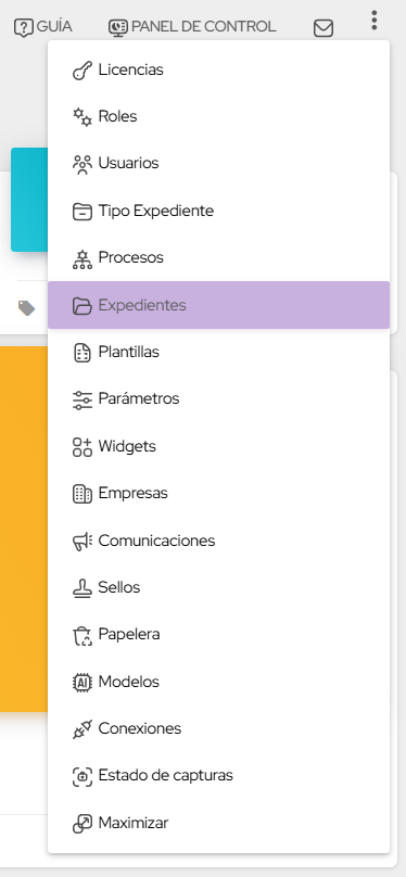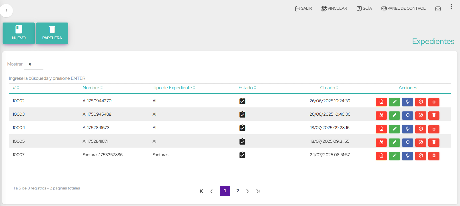 Los parámetros que usted puede visualizar en la pantalla principal de Expedientes son: