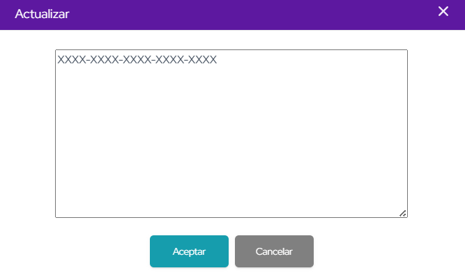 Debe hacer click en la parte inferior izquierda donde figura el ícono de un lápiz. Visualice la ventana "Actualizar" en donde debe ingresar el token que llegó a su correo electrónico. Haga click en "Aceptar" para validar la acción.