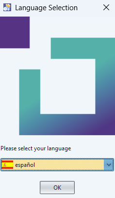 Seleccione el idioma de preferencia. Haga click en el botón "OK" para continuar a la pantalla de bienvenida.