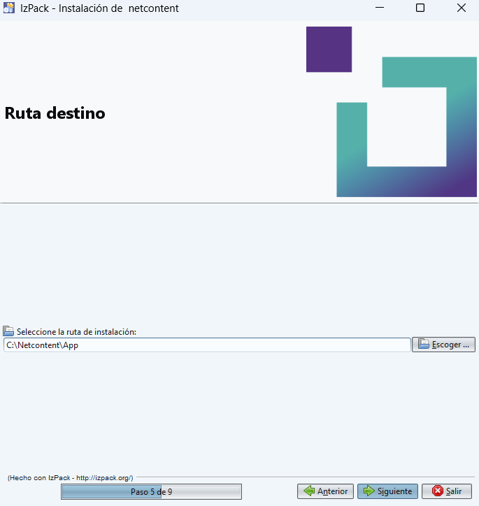 A continuación seleccione la carpeta de destino a donde se va a instalar Netcontent, por defecto se guardará en la ruta C:\Program Files (x86)\netcontent-setup. Si quiere cambiar la ruta haga click en "Buscar" y luego seleccione otra carpeta. Haga click en "Aceptar" y luego en "Instalar".