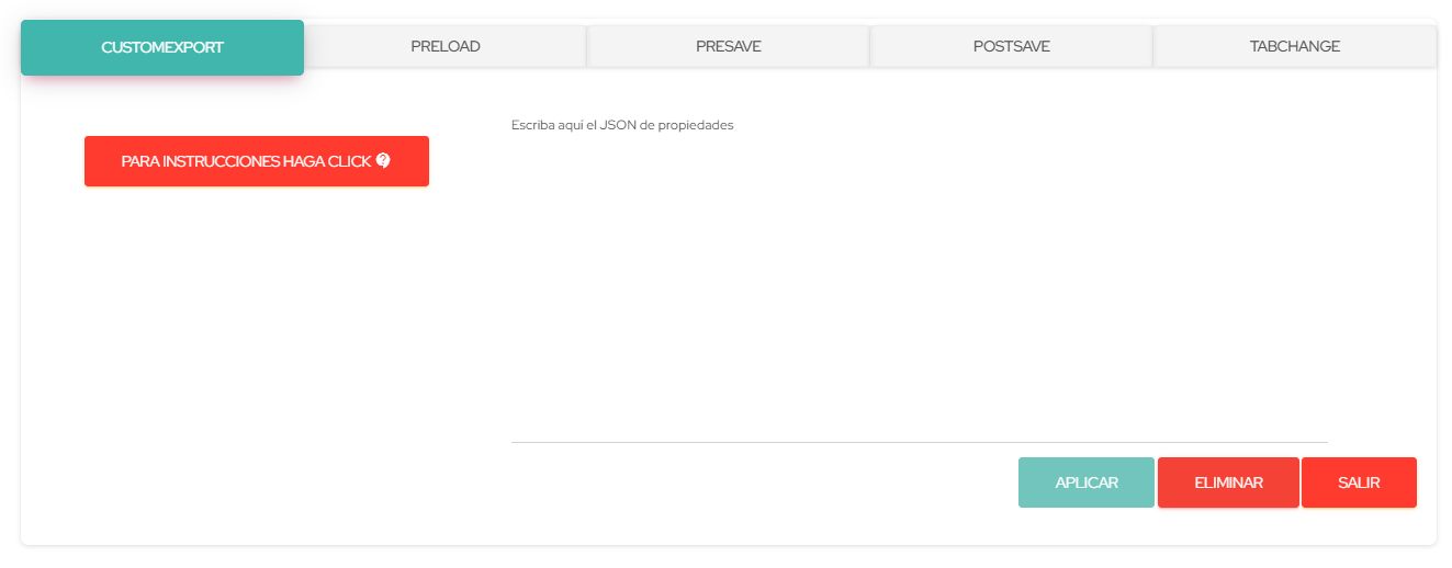 Permite definir una exportación personalizada para el Tipo de Expediente. Para tal fin se utiliza la definición de un objeto Json